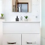 I visitatori del White Heaven - Stylish 9Th-Floor Apartment With City Views potranno godere del comfort di un bagno con asciugacapelli e teli da bagno. Inoltre, sono presenti una cabina doccia e un bagno con WC separato.